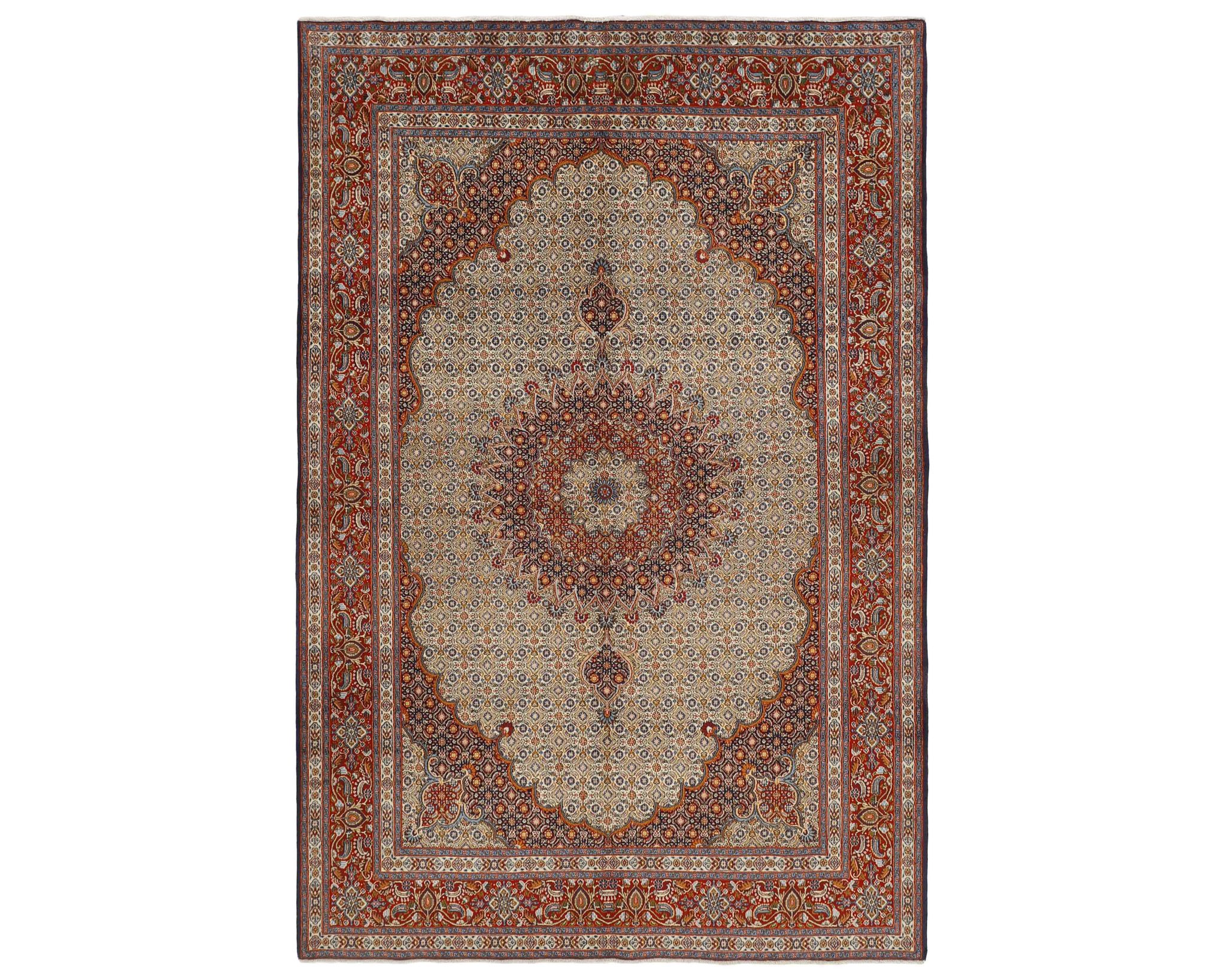 Moud Mahi orientalisk matta 192 x 298 cm är en handknuten ullmatta som kombinerar traditionellt hantverk med modern estetik. Den är perfekt för att skapa en varm och inbjudande atmosfär i ditt hem, oavsett om det är i vardagsrummet, matsalen eller ett kontor. Mattan används ofta i rum där man vill ha en stilfull och tidlös inredning.